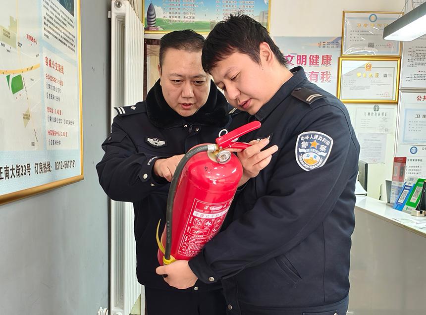 派出所民警進(jìn)行安全檢查。雄安新區(qū)公安局供圖