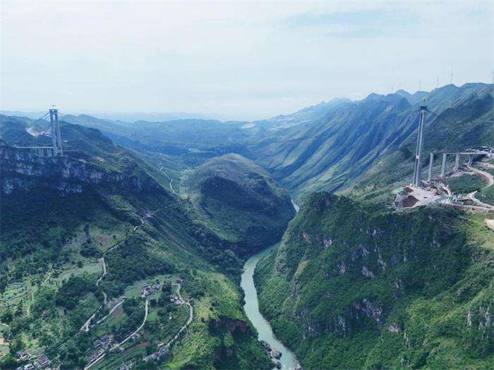 據(jù)了解,六安高速花江峽谷大橋是貴州省橋旅融合示范性項目工程,大橋主橋跨徑1420米,橋面至水面高度625米,建成后,花江峽谷大橋不僅主橋跨徑居山區(qū)橋梁跨徑世界第一,更將成為新的山區(qū)峽谷世界第一高橋。同時,將通過建設(shè)“橋梁觀光+橋梁運(yùn)動體驗+旅游服務(wù)”為一體的橋旅融合綜合體,努力打造貴州橋旅融合3.0樣板。