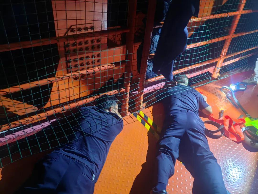 10月20日1時51分,消防救援人員抵達現(xiàn)場,經(jīng)過10多分鐘的救援,在現(xiàn)場多部門人員的合力之下,該男子被成功救出并轉(zhuǎn)移至安全區(qū)域。