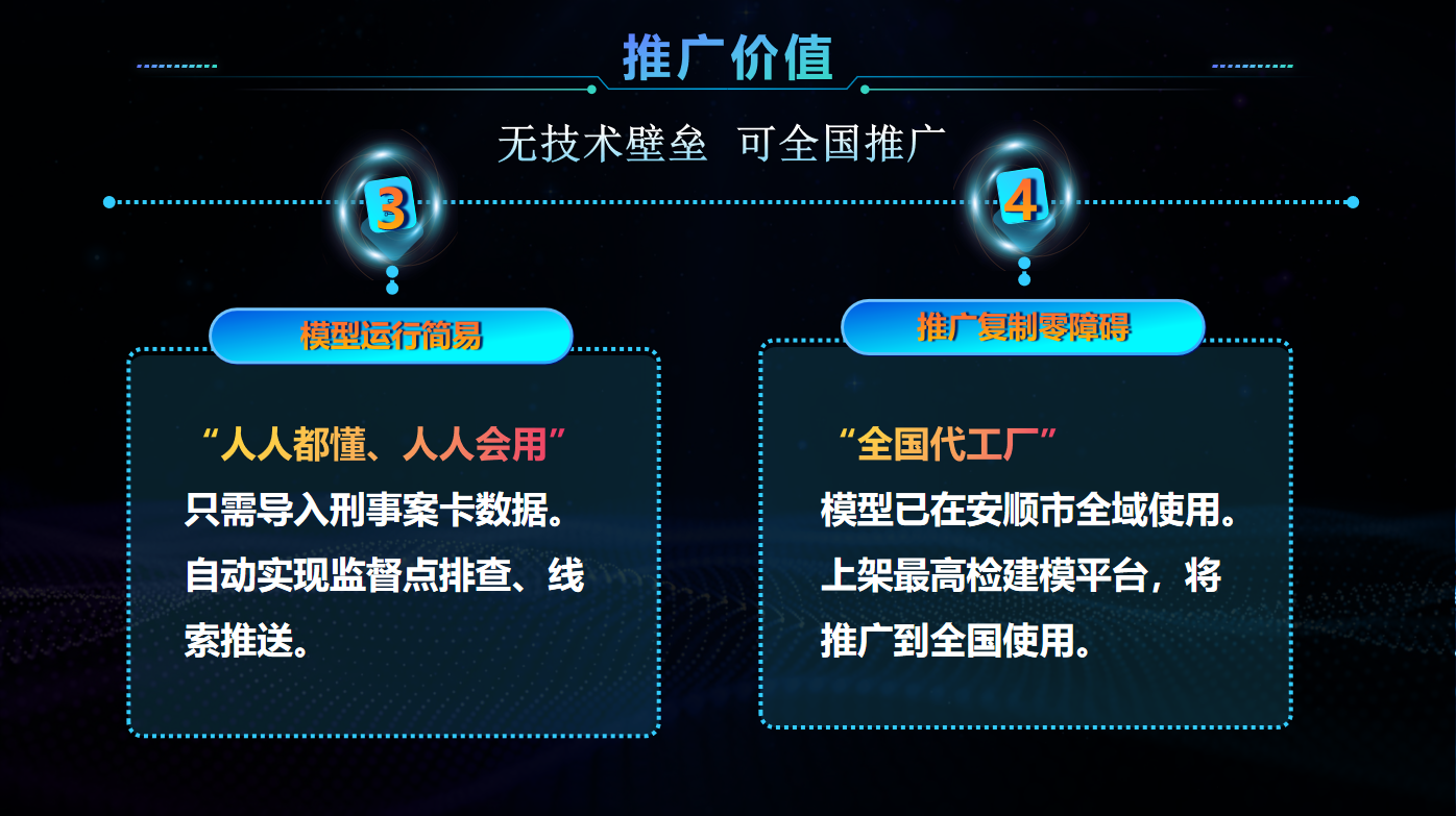 因數(shù)據(jù)來(lái)源方便、推送線索精準(zhǔn)度達(dá)65%、監(jiān)督成效顯著,該模型建成兩個(gè)月內(nèi),已從全省164個(gè)模型中脫穎而出,成功上架最高檢建模平臺(tái),將在全國(guó)范圍內(nèi)推廣應(yīng)用。