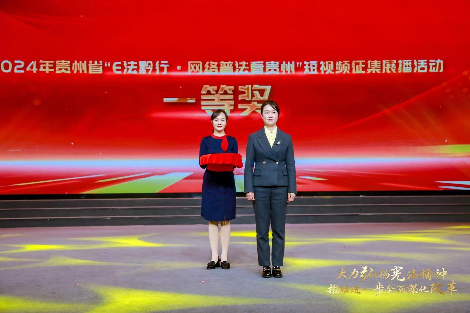 活動(dòng)現(xiàn)場(chǎng)為貴州省2024年“E法黔行·網(wǎng)絡(luò)普法看貴州”短視頻征集展播活動(dòng)獲獎(jiǎng)作品進(jìn)行頒獎(jiǎng),中共貴陽(yáng)市云巖區(qū)委宣傳部作品《節(jié)奏很云巖——毒禍》獲一等獎(jiǎng),黔東南州從江縣司法局、國(guó)家稅務(wù)總局黔南州稅務(wù)局作品《鄉(xiāng)村國(guó)際電影節(jié)2之依法維權(quán)》《黔南稅務(wù)“黔韻說(shuō)唱”特色理論宣講短片之享個(gè)稅福利》獲二等獎(jiǎng),貴州省忠莊監(jiān)獄、貴陽(yáng)市開(kāi)陽(yáng)縣人民檢察院、極速蝸牛公司聯(lián)合貴州民族報(bào)作品《紅線》《護(hù)苗》《按鍵傷人》獲三等獎(jiǎng)?;顒?dòng)中,來(lái)自盤(pán)州快樂(lè)天使藝術(shù)團(tuán)和丹寨縣文體廣電旅游局、貴州省忠莊監(jiān)獄、貴州富民村鎮(zhèn)銀行等單位的干部職工表演了情景劇、音樂(lè)舞臺(tái)劇、說(shuō)唱、快板等節(jié)目,以豐富多彩的藝術(shù)形式將憲法宣傳與文藝創(chuàng)作有機(jī)結(jié)合,推動(dòng)憲法精神和法治理念深入人心。
