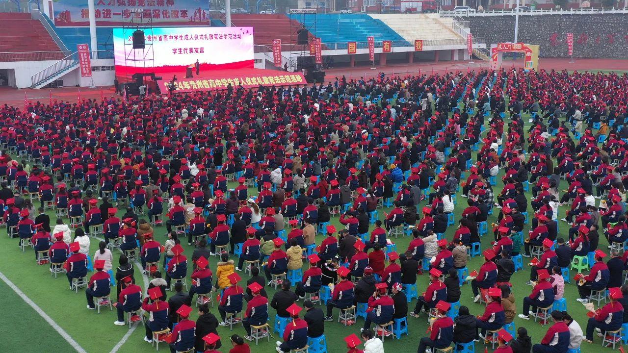 2024年12月4日是第十一個國家憲法日,貴州省教育廳、貴州省司法廳、共青團省委在黔東南州凱里市第一中學,舉辦主題為“弘揚憲法精神、領航青春成長”的貴州省高中學生成人儀式禮敬憲法示范活動。
