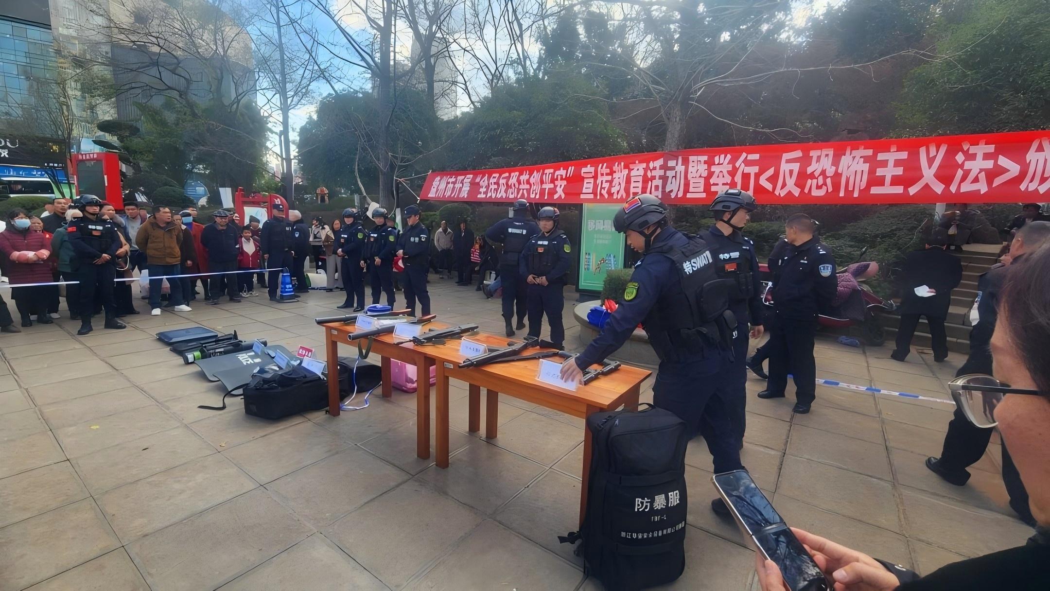 12月27日,《中華人民共和國反恐怖主義法》頒布9周年之際,為切實(shí)增強(qiáng)廣大群眾的反恐防恐意識和應(yīng)對恐怖襲擊的能力,貴州省六盤水市公安局反恐支隊(duì)在中心城區(qū)舉行六盤水市“反恐怖主義法頒布實(shí)施九周年”宣傳活動(dòng)。