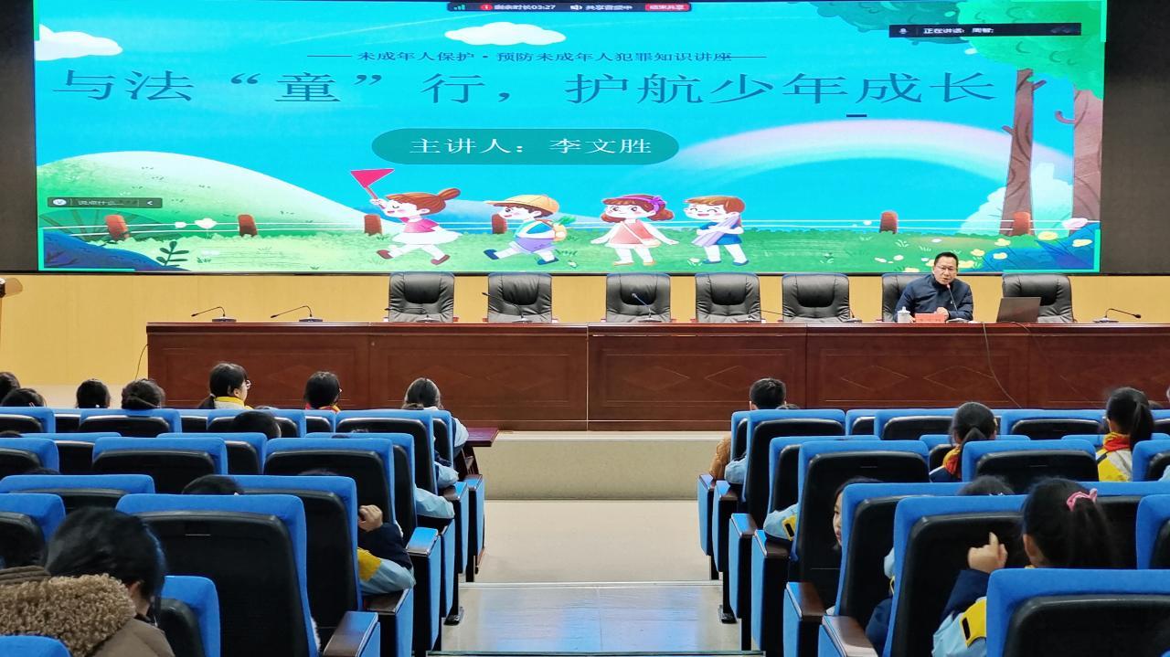 法治副校長李文勝以“與法‘童’行,護航少年成長”為主題,結(jié)合小學生的認知特點,重點講解了《中華人民共和國未成年人保護法》《中華人民共和國預防未成年人犯罪法》,深入剖析未成年人犯罪的常見類型及其背后的原因,并向?qū)W生們闡述了犯罪行為對個人、家庭和社會造成的嚴重危害。