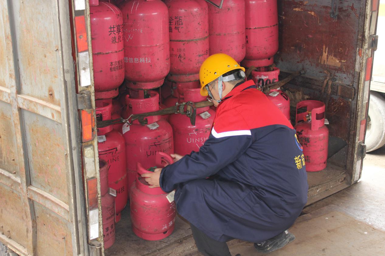 執(zhí)法人員先后來到云南國星能源有限公司貴州分公司、貴州新宏達石化有限公司,重點對氣瓶充裝單位許可資格是否在有效期內、是否充裝不符合安全技術規(guī)范氣瓶、作業(yè)人員是否持有證件、充裝前后的檢查是否按照安全技術規(guī)范要求進行、是否執(zhí)行氣瓶全流程追溯管理等進行檢查。
