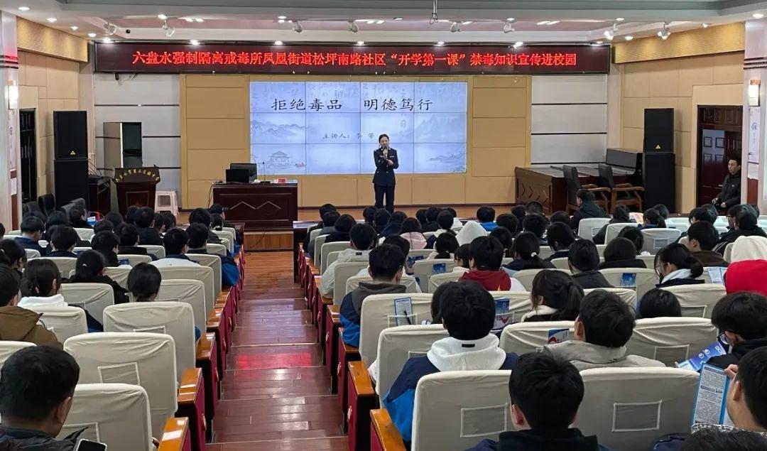 2月24日,貴州省六盤水強(qiáng)制隔離戒毒所應(yīng)邀走進(jìn)六盤水市第二實(shí)驗(yàn)中學(xué)開(kāi)展禁毒宣傳活動(dòng),上好開(kāi)學(xué)禁毒教育第一課,積極營(yíng)造健康和諧的校園環(huán)境。鐘山區(qū)鳳凰街道松坪南路社區(qū)參與了此次活動(dòng)。