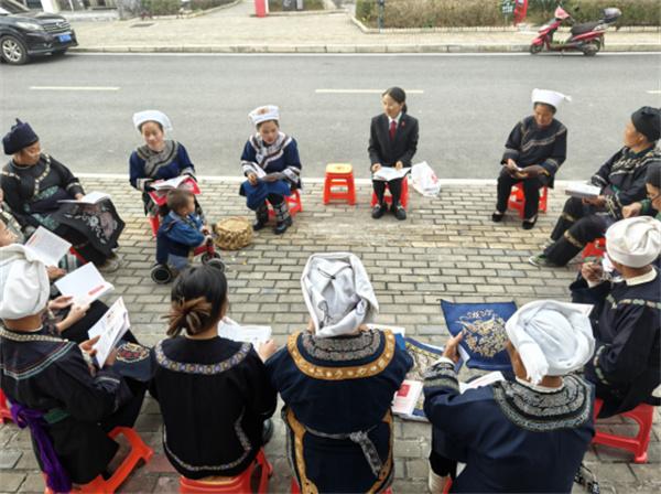 “重婚有違民法典,包辦買賣不對(duì)路,朝三暮四不可取,養(yǎng)老育兒是義務(wù)。”繡娘們創(chuàng)作的普法水歌生動(dòng)有趣。在雪花湖社區(qū)“繡娘之家”,繡娘們坐在板凳上一邊刺繡一邊興致勃勃地唱著。韋應(yīng)麗介紹說:“在水鄉(xiāng),群眾愛唱歌但識(shí)字不多,學(xué)習(xí)法律有困難。所以我們的繡娘不僅要成為矛盾糾紛調(diào)解的行家,更要成為合格的普法員。”繡娘們將國(guó)家法律法規(guī)和政策編排成“調(diào)解歌”“新時(shí)代女性歌”“孝老愛親歌”“禁毒防邪歌”等少數(shù)民族山歌,唱給群眾聽,讓大家一聽就懂,多聽還能跟著哼唱,對(duì)法律知識(shí)更感興趣,真正做到聽得懂、記得住、用得上。