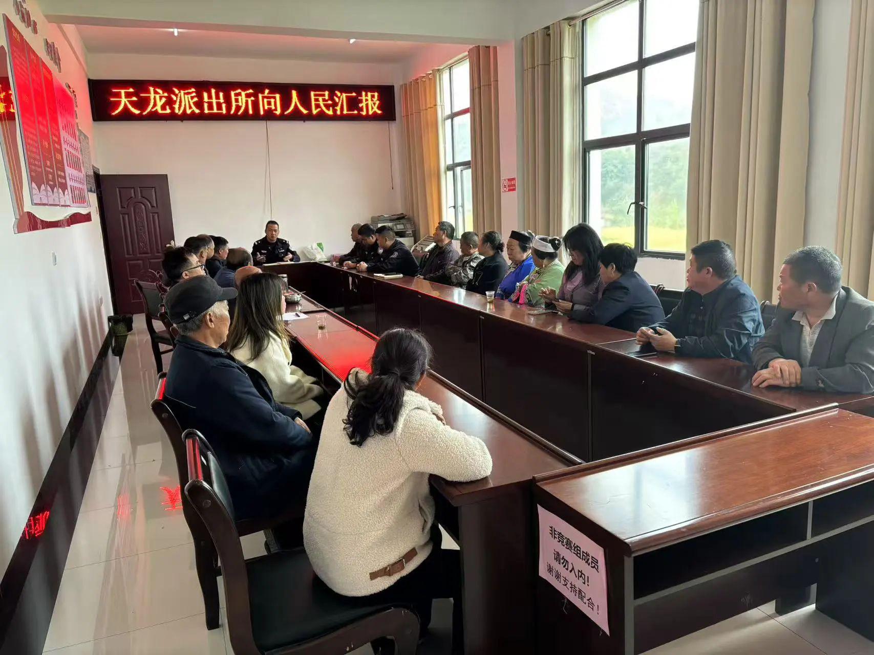 為深化警民聯(lián)動機(jī)制,推進(jìn)平安建設(shè)提質(zhì)增效,近日,貴州省安順市平壩區(qū)公安局天龍派出所在天龍鎮(zhèn)天龍村開展“向人民匯報(bào)”警民懇談活動。政府相關(guān)部門代表、村委干部、個體工商戶及群眾代表等30余人齊聚一堂,共話轄區(qū)治安治理新成效,共謀平安建設(shè)新路徑。