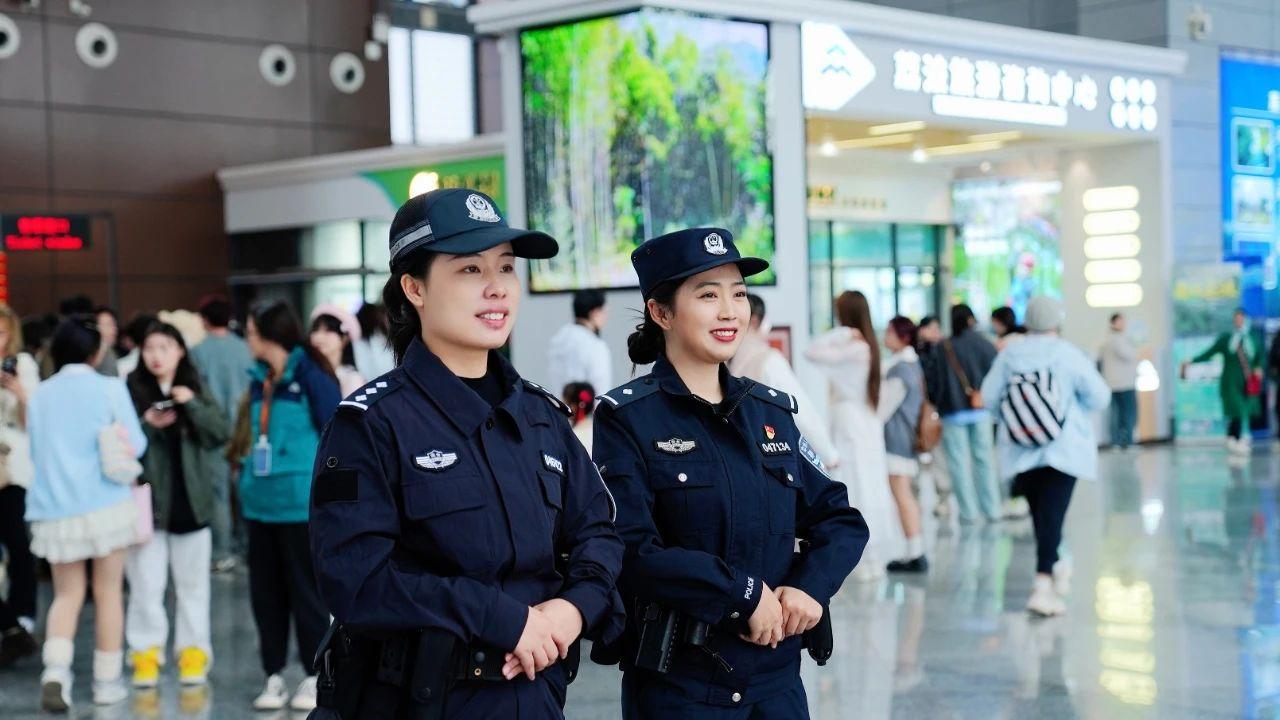 圖為民警在荔波旅客咨詢中心執(zhí)勤。