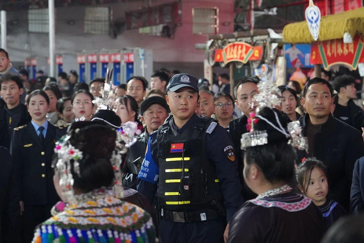 圖為榕江縣公安局民警維護活動現(xiàn)場秩序。