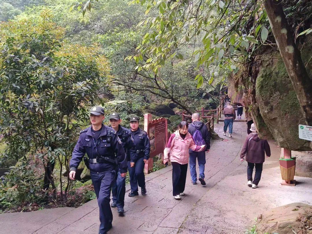 圖為民輔警在赤水丹霞旅游區(qū)開展巡邏。