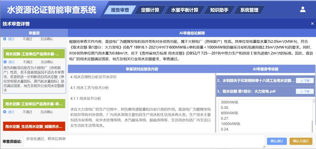 水資源論證報(bào)告智能審查系統(tǒng)的應(yīng)用,可以避免出現(xiàn)因報(bào)告書質(zhì)量差而開展專家審查的不利局面,可以大大提高審查效率,同時(shí)也提升了審查的規(guī)范性、公正性和科學(xué)性,提高水利新質(zhì)生產(chǎn)力。