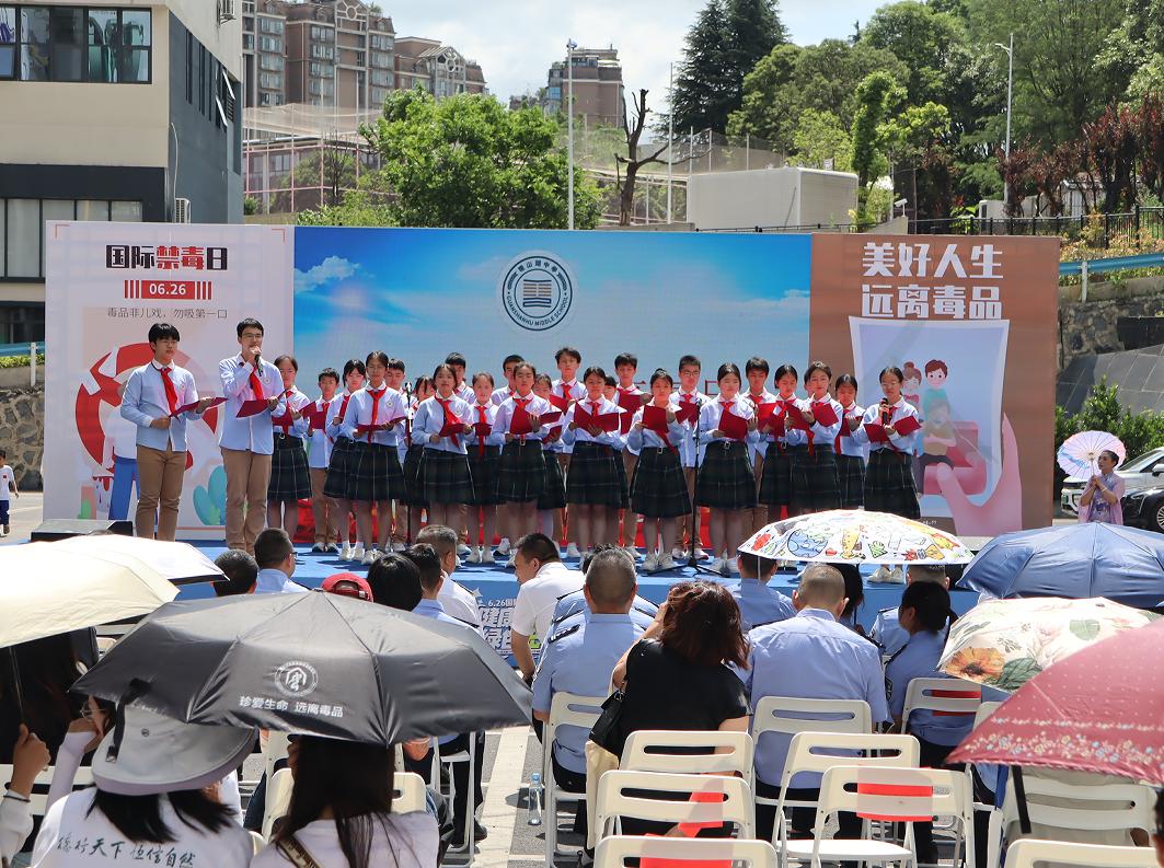 活動(dòng)當(dāng)天,以一支《奢香夫人》舞蹈節(jié)目拉開序幕,《微山湖》《珍愛生命遠(yuǎn)離毒品》《人間煙火》等禁毒主題文藝節(jié)目輪番上演,將禁毒宣傳與舞蹈、朗讀相結(jié)合,傳遞禁毒力量,呼吁大家珍愛生命、遠(yuǎn)離毒品。