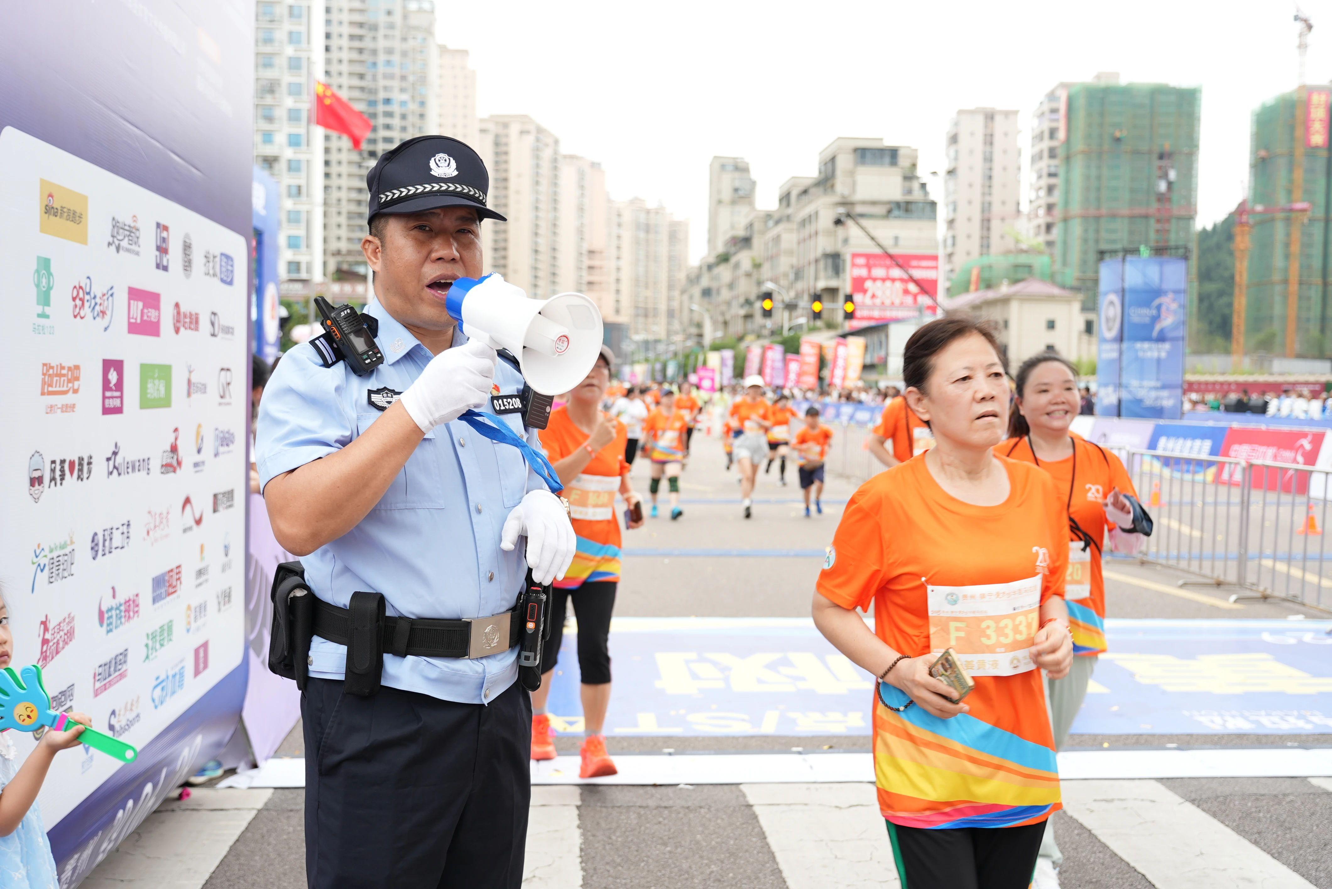 在嚴格安保的同時,鎮(zhèn)寧公安堅持“服務(wù)+管理”理念,積極為參賽選手和觀賽群眾提供暖心服務(wù),隨時應(yīng)對突發(fā)狀況。在每個點位,執(zhí)勤民輔警以定點值守與流動巡邏相結(jié)合方式,保障參賽選手的跑步路線安全,隨時應(yīng)對參賽人員可能出現(xiàn)的身體狀況和意外受傷等情況。