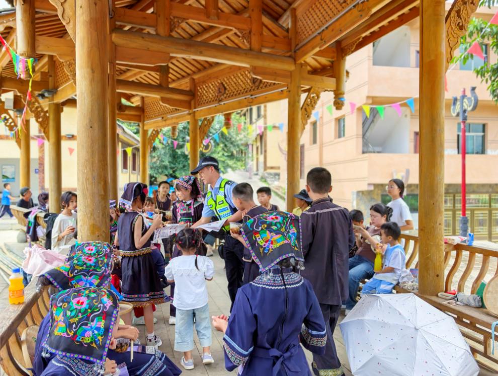 近日,貴州省六盤水市六枝特區(qū)2025年全國夏季“村晚”示范點展示活動之享“村趣”傳統(tǒng)民俗體驗活動在牂牁鎮(zhèn)自強(qiáng)廣場開展,活動引來周邊上百群眾和游客前來觀看參加。借此機(jī)會,六枝特區(qū)公安局交通警察大隊在做好道路交通安保工作的同時,以該民俗活動為契機(jī),結(jié)合夏季交通安全出行特點,組織執(zhí)勤交警走進(jìn)民俗活動現(xiàn)場,開展農(nóng)村夏季交通安全宣傳。