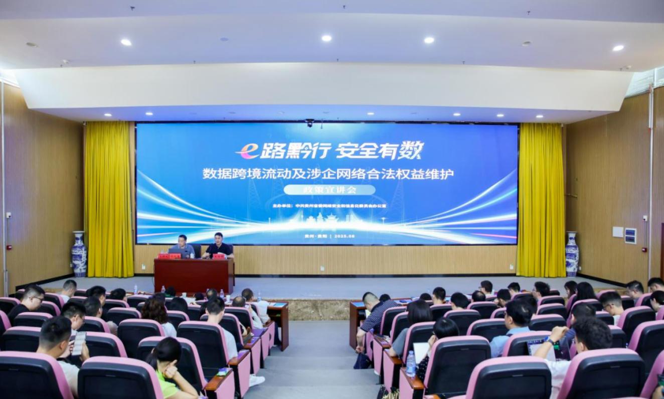近日,貴州省委網(wǎng)信辦組織開展“e路黔行˙安全有數(shù)”之?dāng)?shù)據(jù)跨境流動(dòng)及涉企網(wǎng)絡(luò)合法權(quán)益維護(hù)政策宣講會(huì)。各市(州)、省直相關(guān)部門有關(guān)負(fù)責(zé)同志和有關(guān)企業(yè)數(shù)據(jù)安全管理部門負(fù)責(zé)人共100余人參加。