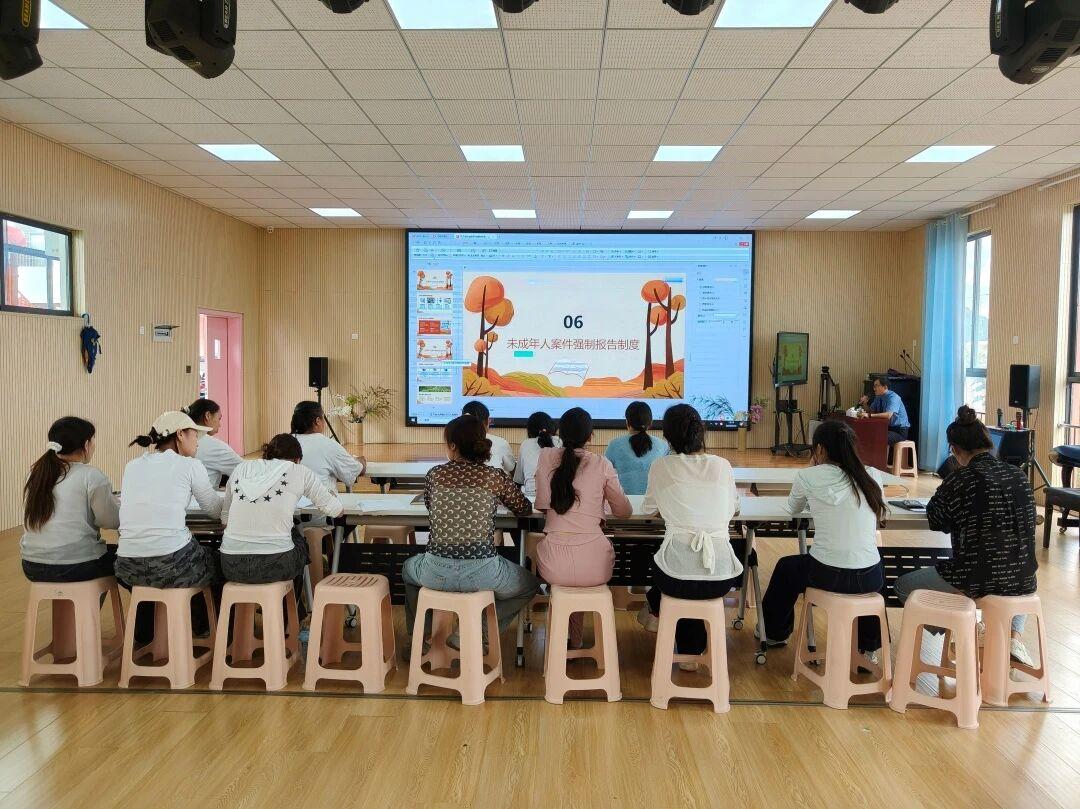 課堂上,檢察官介紹了校園安全防護(hù)體系。同時,圍繞幼兒園安全風(fēng)險現(xiàn)狀與挑戰(zhàn)、教師安全防護(hù)職責(zé)與法律依據(jù)向全體教職工授課。首先,檢察官講述防溺水安全防護(hù)該怎樣識別且預(yù)防及相關(guān)應(yīng)急處置與救援流程;其次,結(jié)合幼兒園特殊環(huán)境下如何對身體隱私與安全接觸教育方面作了針對性講解,并通過案例講評和圖片展示的方式講述了防性侵害、防暴力、防霸凌的相關(guān)內(nèi)容。最后,結(jié)合落實強制報告制度典型案例向全校教職工就如何發(fā)現(xiàn)和識別侵害未成年人的常見情形開展細(xì)致講解,引導(dǎo)教職工掌握在孩子們遇到危險和意外時該如何處理,進(jìn)一步增強教職工安全防范意識。