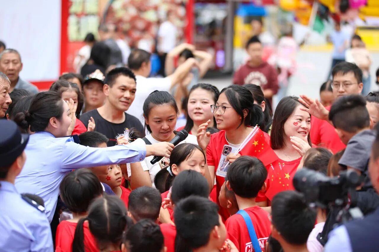 圖為民警對(duì)群眾進(jìn)行反詐知識(shí)互動(dòng)活動(dòng)。