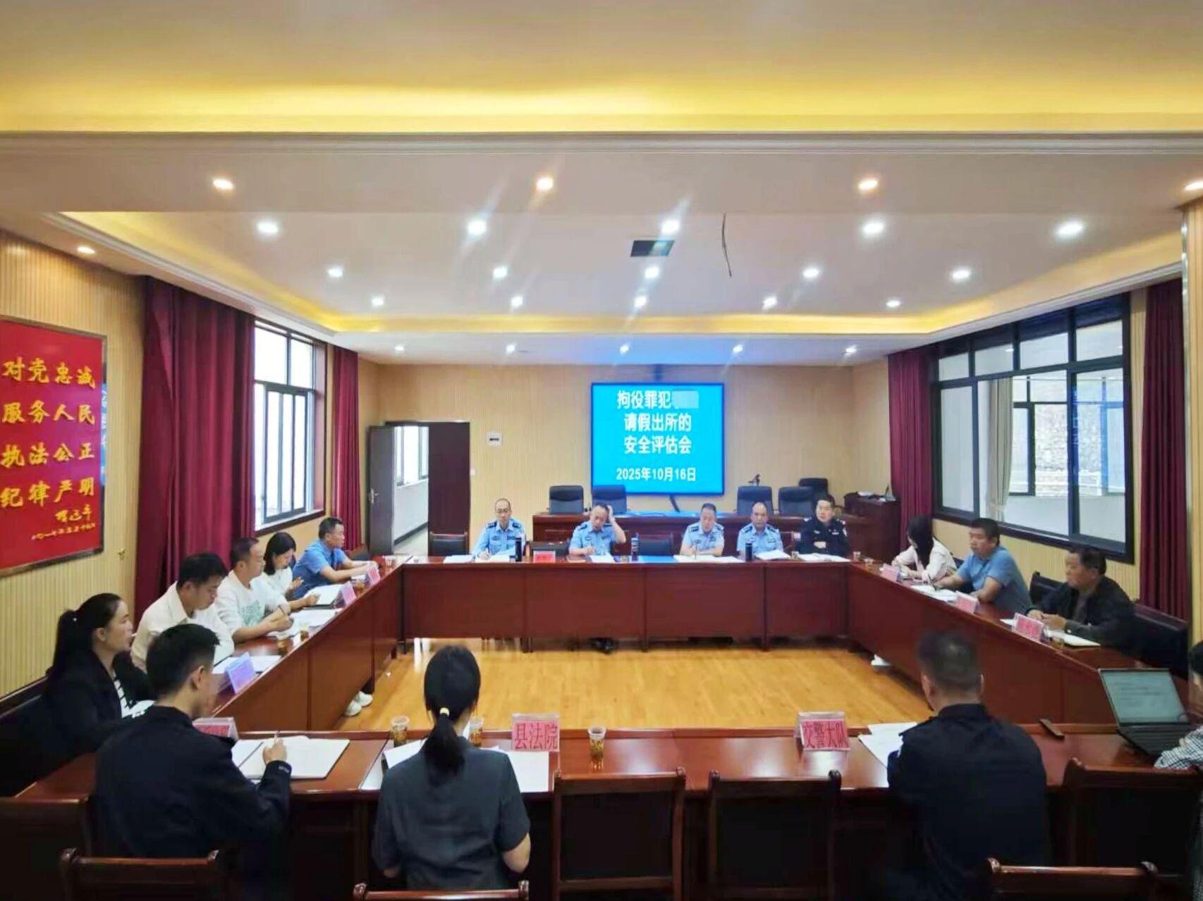 圖為拘役罪犯李某請(qǐng)假出所安全評(píng)估會(huì)。