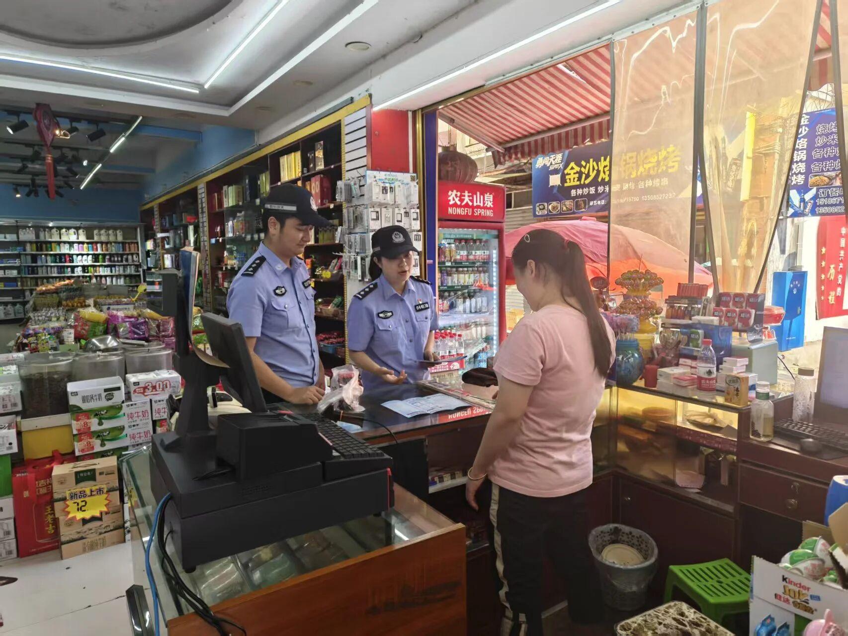 圖為民警對商戶進行反詐知識宣傳。