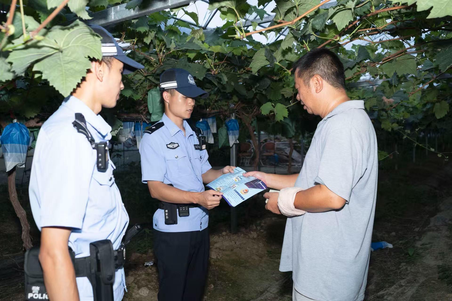 九月傍晚的塘邊鎮(zhèn),夕陽把葡萄藤的影子拉長,一串串紫瑩瑩的葡萄垂在架下,風(fēng)一吹就飄來甜甜的果香。貴州省黔南州平塘縣公安局塘邊派出所的民警蹲在藤蔓旁,手里還攥著剛幫果農(nóng)李哥摘的一串葡萄,笑著叮囑:“李哥,您家葡萄裝箱后可得把棚門鎖牢實(shí),最近夜里涼,別讓小偷鉆了空子……”說著,他掏出小本子,邊聽李哥說采收時(shí)的難處,邊認(rèn)真記著,筆尖在紙上沙沙響。