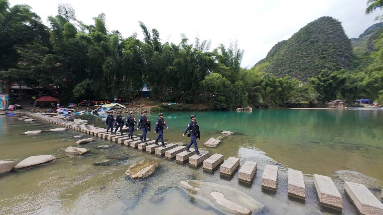 “警力動起來、警車跑起來、警摩巡起來、警航飛起來、警燈亮起來”——羅甸公安以“空地一體、動靜結(jié)合”為目標,整合警務(wù)資源打造“五警聯(lián)動”機制,實現(xiàn)景區(qū)及周邊區(qū)域全方位守護。結(jié)合景區(qū)人流、車流潮汐變化,羅甸公安建立“動態(tài)警力調(diào)配”機制,在旅游高峰時段將15%機關(guān)警力下沉至重點區(qū)域,累計開展動態(tài)巡防300余次,現(xiàn)場處置涉旅小事25起。