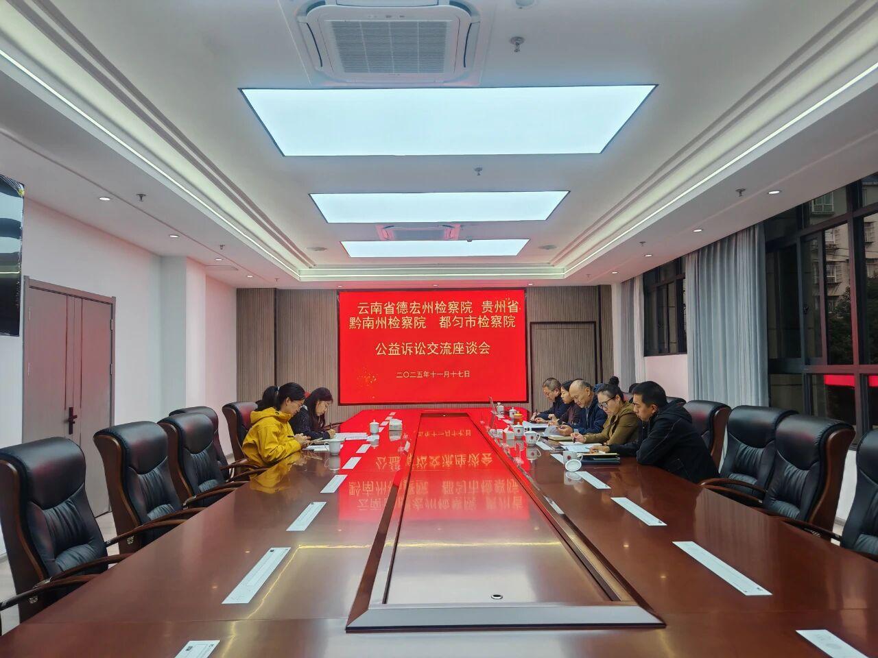 為進一步提升公益訴訟檢察工作質(zhì)效,深化跨地域協(xié)作,11月17日,云南省德宏州人民檢察院與貴州省黔南州人民檢察院、都勻市人民檢察院在都勻市召開公益訴訟專題交流座談會,共商辦案經(jīng)驗,共謀發(fā)展新篇。
