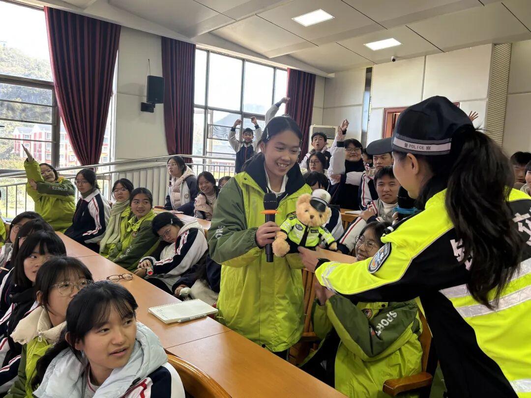 為進(jìn)一步提升學(xué)生參與積極性,交警專門設(shè)置了互動(dòng)問答環(huán)節(jié)。民警緊扣宣講內(nèi)容提出問題,學(xué)生踴躍舉手,積極應(yīng)答,現(xiàn)場(chǎng)氣氛熱烈有序。對(duì)回答正確的學(xué)生,民警現(xiàn)場(chǎng)贈(zèng)送交警小熊以示鼓勵(lì),既增強(qiáng)了活動(dòng)的趣味性和吸引力,也使學(xué)生在輕松互動(dòng)中進(jìn)一步鞏固交通安全知識(shí),在寓教于樂中深化道路交通安全認(rèn)知?! ?/p>
