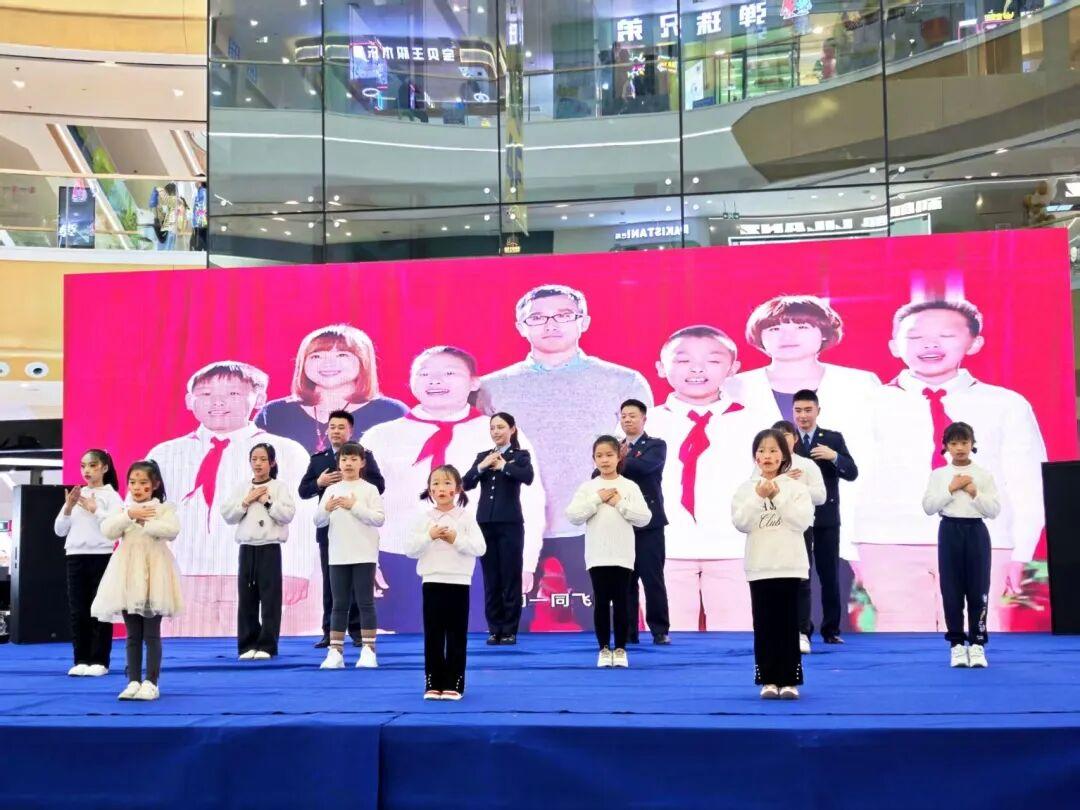 圖為黔南州稅務局普法工作者與小朋友們共同演繹手勢舞《憲法伴我成長》。