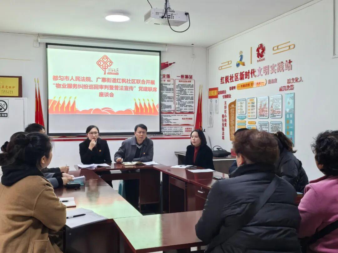 為充分發(fā)揮司法職能在保障民生、促進(jìn)社會(huì)和諧中的作用,近日,貴州省黔南州都勻市人民法院融和先鋒黨支部與都勻市廣惠街道紅楓社區(qū)黨委深化黨建聯(lián)建機(jī)制,聯(lián)合開展“物業(yè)巡回審判暨普法宣傳”主題活動(dòng),將司法服務(wù)延伸至群眾家門口,助力化解物業(yè)糾紛難題。