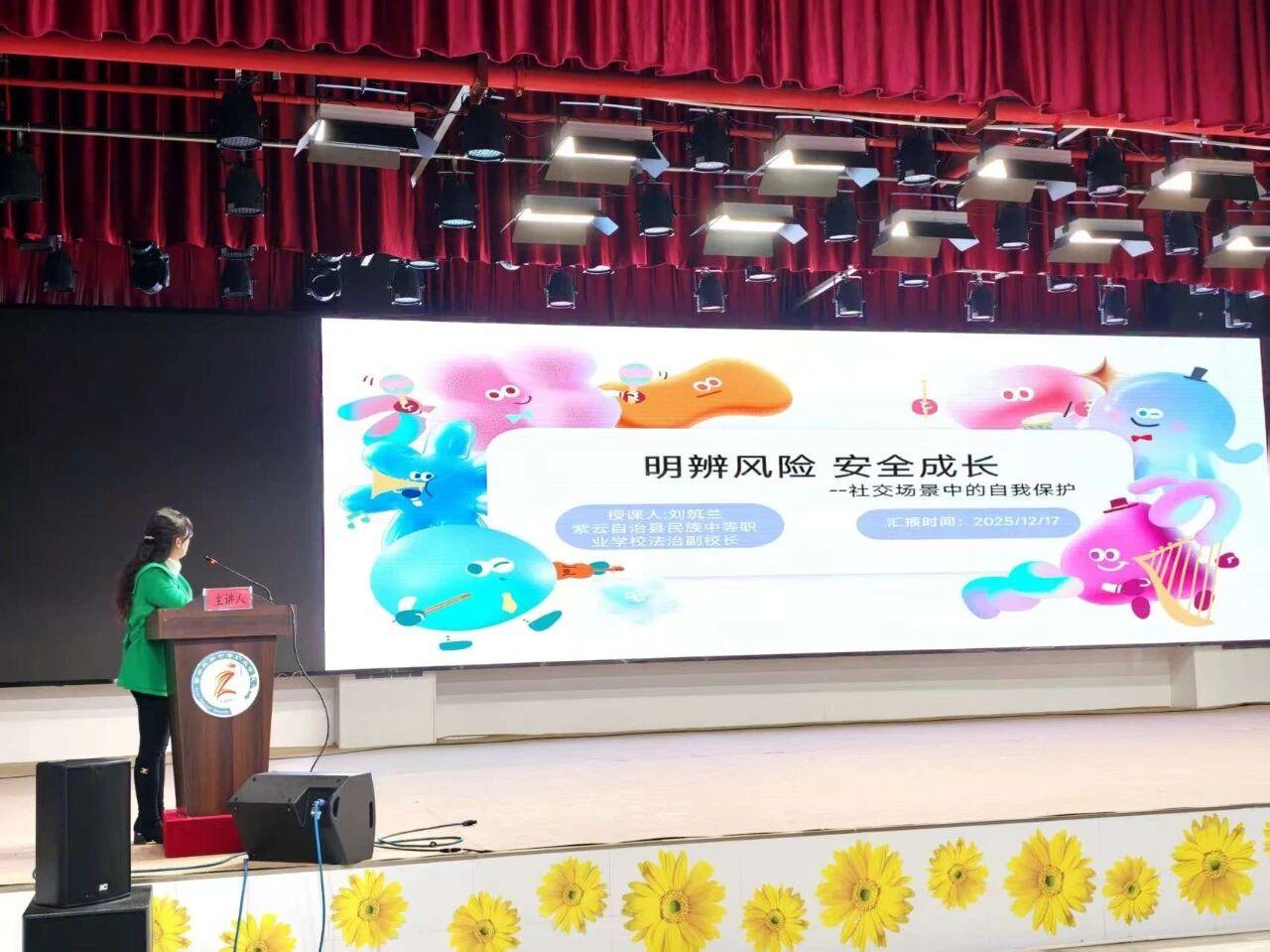近日,一場別開生面的“護(hù)航青春 健康同行”青少年自我保護(hù)專題講座在貴州省安順市紫云苗族布依族自治縣民族中等職業(yè)學(xué)校舉行。本次活動由貴州省安順市紫云自治縣司法局、縣計劃生育協(xié)會、縣疾控中心與學(xué)校聯(lián)合舉辦,縣司法局黨組書記、局長劉筑蘭以法治副校長身份,為青少年提供一堂涵蓋法治、安全與健康的法治實踐課。
