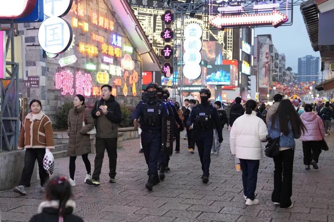 為確保元旦假期全省社會面安全穩(wěn)定,貴州省公安機關(guān)嚴格落實公安武警聯(lián)勤武裝巡邏和快速反應(yīng)機制,針對夜市、商圈等人員密集場所和機場、車站等重點部位開展社會治安巡邏防控,累計投入警力2.3萬余人次,做到“見警察、見警燈、見警車”,有力維護了良好治安秩序。