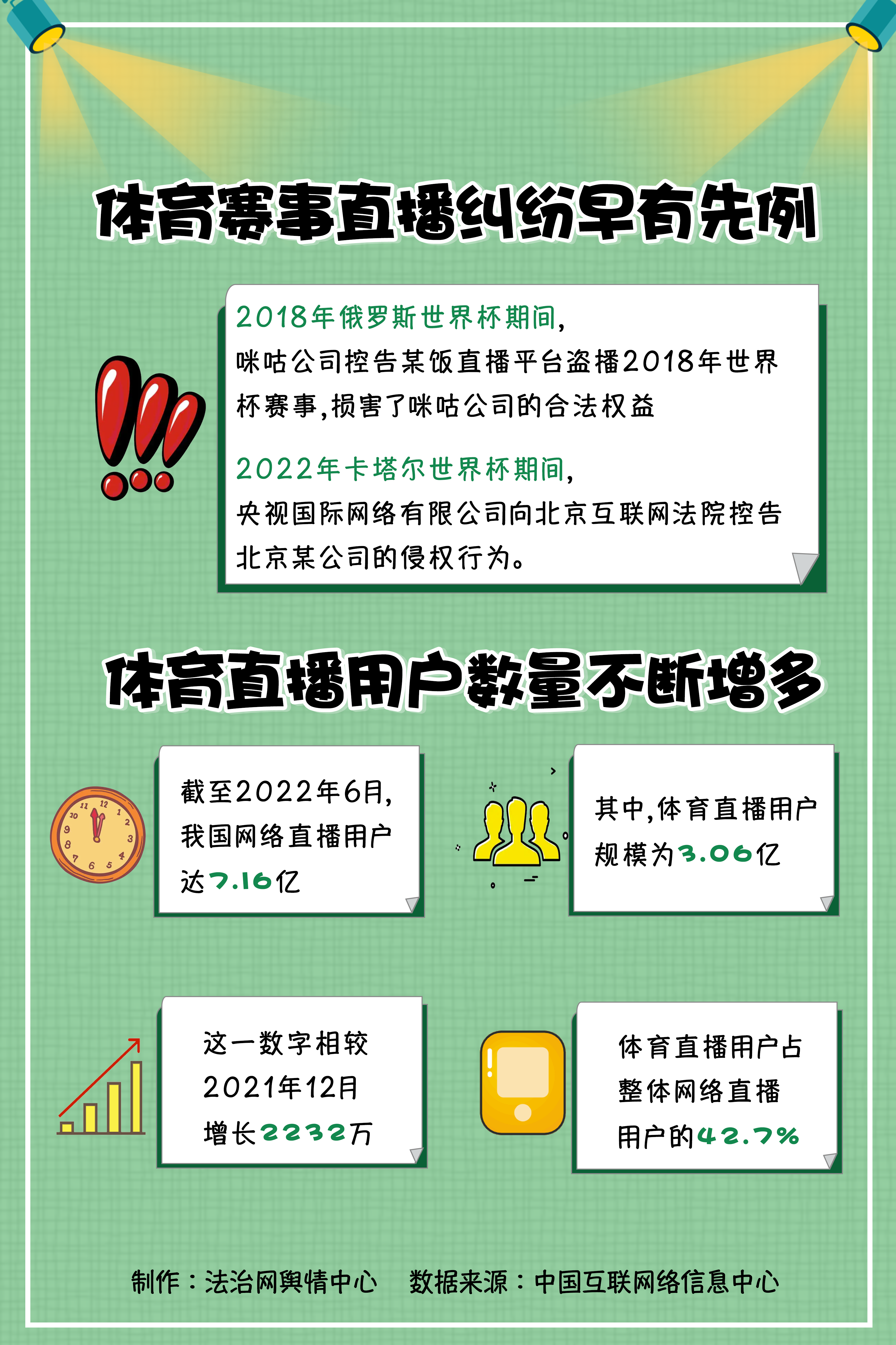 近年來,我國體育直播用戶不斷增多。根據(jù)中國互聯(lián)網(wǎng)絡(luò)信息中心發(fā)布的第50次《中國互聯(lián)網(wǎng)絡(luò)發(fā)展狀況統(tǒng)計報告》,截至2022年6月,我國網(wǎng)絡(luò)直播用戶達到7.16億,其中體育直播用戶規(guī)模為3.06億。