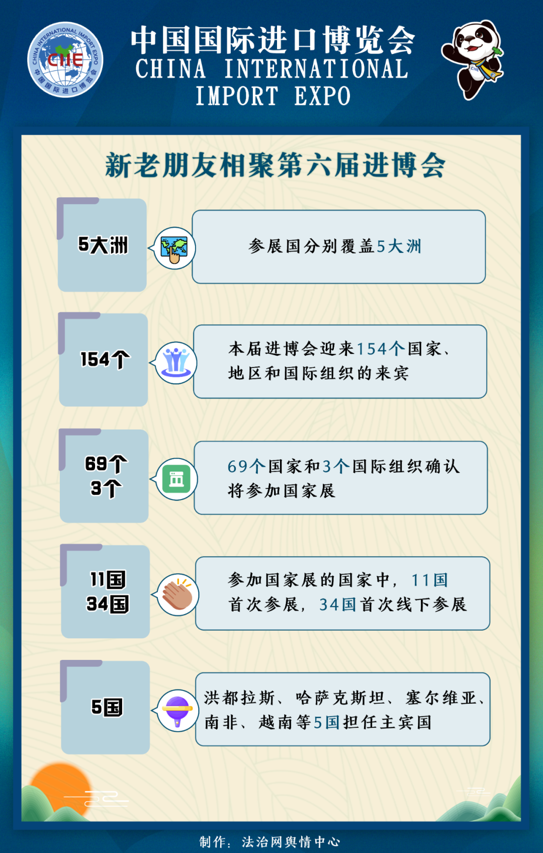 本屆進(jìn)博會(huì)將迎來(lái)154個(gè)國(guó)家、地區(qū)和國(guó)際組織的來(lái)賓。其中國(guó)家展的參展國(guó)別覆蓋五個(gè)大洲。69個(gè)國(guó)家和3個(gè)國(guó)際組織確認(rèn)將參加國(guó)家展。其中,11國(guó)首次參展,34國(guó)首次線下參展,洪都拉斯、哈薩克斯坦、塞爾維亞、南非、越南等5國(guó)擔(dān)任主賓國(guó)。