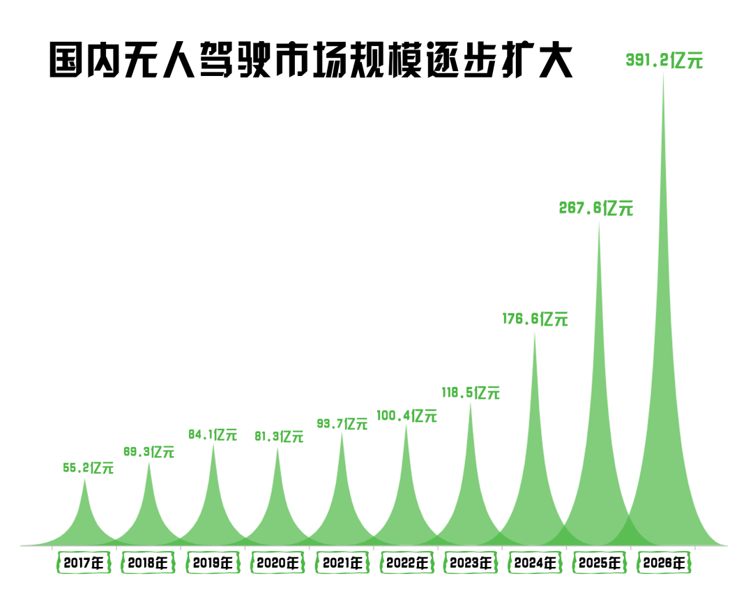 從艾媒咨詢發(fā)布的數(shù)據(jù)來看,我國無人駕駛市場規(guī)模呈上升趨勢,預(yù)計到2026年,我國無人駕駛市場規(guī)模有望突破391億元,持續(xù)上漲的市場規(guī)模,也預(yù)示著無人駕駛明朗的未來。