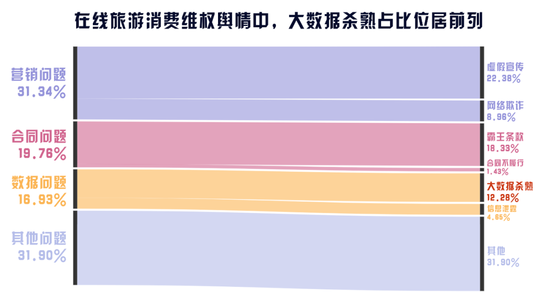 在超過10%在線旅游消費(fèi)輿情問題比例的4個(gè)方面中,大數(shù)據(jù)殺熟(12.28%)赫然在列,其存在于傳統(tǒng)平臺的同時(shí),也向新型平臺“延伸”。