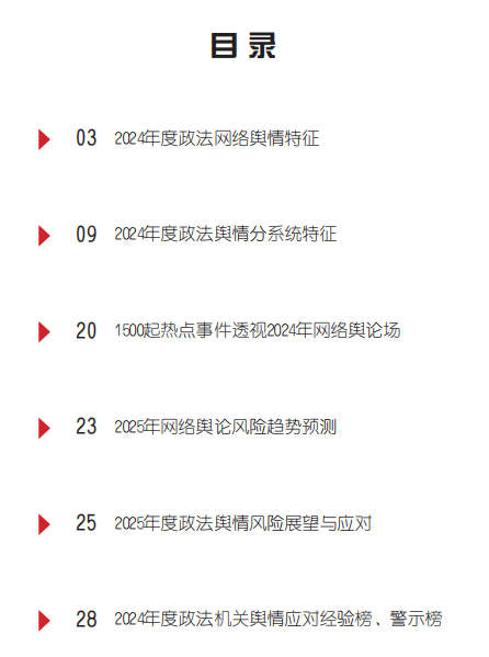 3月20日,法治網(wǎng)發(fā)布最新研究成果《2024年度政法輿情分析報告》(以下簡稱《報告》),全面回顧、梳理并分析了2024年度政法輿情的典型特征,并對2025年度的網(wǎng)絡(luò)輿論態(tài)勢和政法輿情風(fēng)險作出研判。