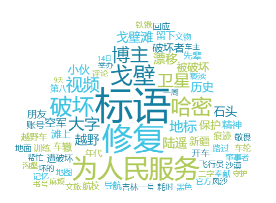 10月12日,微博大V“@鈞正平”評論稱,“這些標語不但承載著建設者的汗水與信仰,更是中國共產(chǎn)黨人始終堅守的根本宗旨”“在標語周邊肆意漂移,不僅破壞了自然地貌,更是對歷史記憶的踐踏和公眾感情的傷害”。在各方的對峙和爭論下,輿情熱度不斷上升,10月15日,新疆日報社官方微博“@天山網(wǎng)”報道稱,10月12日,哈密市委、市政府等部門召開專題會議,商討常態(tài)保護措施。10月14日,哈密市文化體育廣播電視和旅游局聯(lián)合多個部門相關工作人員來到巨幅航標所在地,開展實地踏勘和調(diào)查處置工作。同時當?shù)剡€將巨幅航標納入到了第四次文物普查的范圍。官方的一系列保護措施贏得輿論好評。人民網(wǎng)刊發(fā)評論肯定了博主的修復工作和當?shù)氐姆e極作為,并稱“讓每一處革命‘文物’被妥善保護,讓每一個集體記憶和精神財富被銘記傳承,我們才能在前行的路上走得更穩(wěn)、更遠”。輿情熱度到達峰值。