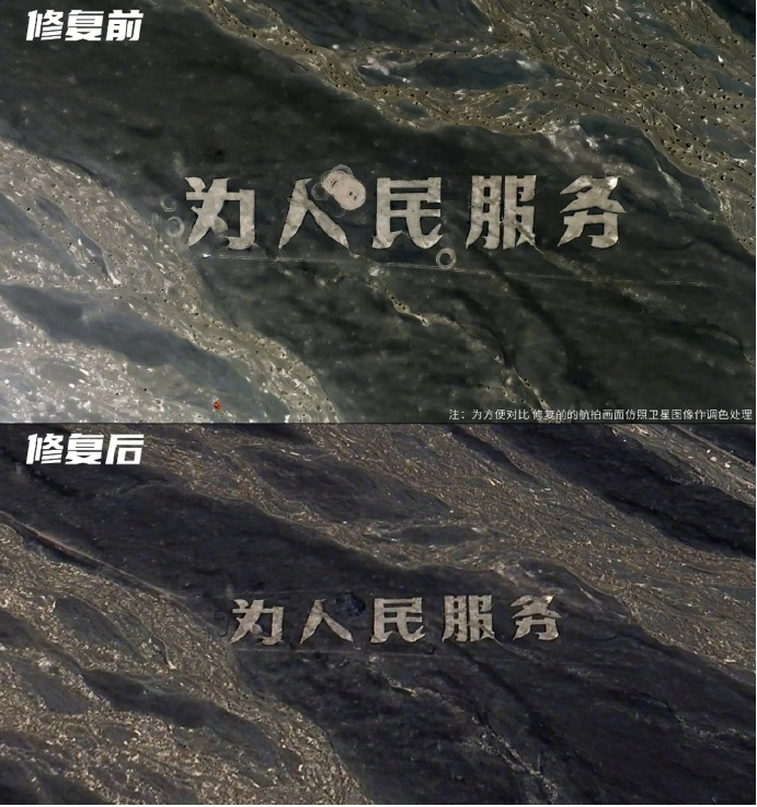 (新疆哈密戈壁灘“為人民服務”標語遭破壞相關對比圖)