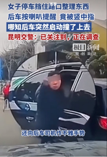 1月22日,據(jù)“極目新聞”報(bào)道,近日,云南昆明斗南花市附近發(fā)生的一起車輛碰撞事故,引發(fā)網(wǎng)絡(luò)關(guān)注。行車記錄儀拍攝的畫面顯示,1月6日16時(shí)17分,一輛黑色商務(wù)車停在不斷有車進(jìn)出的停車場出入口,一女子站在車外,整理車內(nèi)物品。后方一車輛疑要右拐進(jìn)停車場,司機(jī)按喇叭提醒讓路,女子卻以不雅手勢(shì)回應(yīng)。隨后,后車撞向前方商務(wù)車,女子摔倒在地。1月21日,昆明交警部門回應(yīng)稱,目前轄區(qū)事故中隊(duì)正在開展調(diào)查工作,涉事女子的傷情、事故責(zé)任認(rèn)定等具體情況暫不明確。