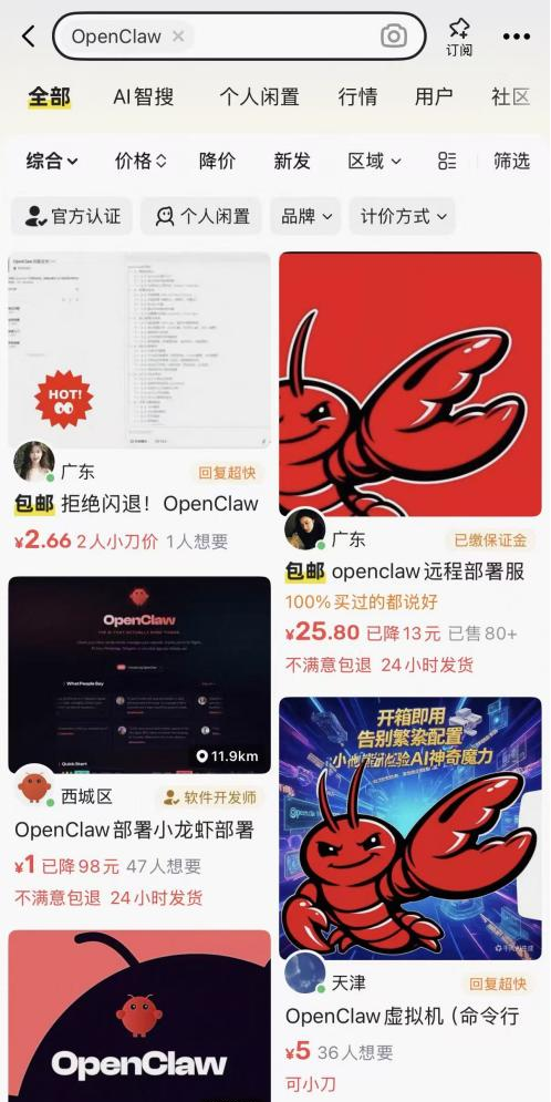 OpenClaw實(shí)現(xiàn)了AI智能體從“交互對話”到“自主執(zhí)行”的突破,能夠直接替用戶完成文件管理、郵件收發(fā)、數(shù)據(jù)分析等實(shí)際任務(wù)。由于其功能強(qiáng)大且部署需要一定技術(shù)門檻,閑魚等平臺(tái)涌現(xiàn)出大量“上門裝龍蝦”“代養(yǎng)龍蝦”的付費(fèi)服務(wù);騰訊、百度等科技企業(yè)相繼推出一鍵部署方案,甚至出現(xiàn)千人排隊(duì)等候部署的場面。此外,深圳、無錫等地推出“政務(wù)龍蝦”應(yīng)用,先后出臺(tái)“龍蝦十條”“龍蝦十二條”等支持政策,“養(yǎng)龍蝦”的熱度持續(xù)攀升。