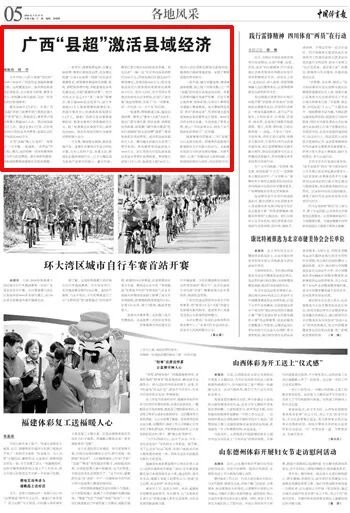 《光明日?qǐng)?bào)》評(píng)論稱(chēng),由賽事熱血匯聚而成的“流量”,正不斷為縣域經(jīng)濟(jì)發(fā)展賦能。不僅將賽事流量轉(zhuǎn)化為經(jīng)濟(jì)增量,更是成為展示廣西縣域魅力、傳播民族文化的重要平臺(tái)?!吨袊?guó)體育報(bào)》評(píng)論稱(chēng),廣西“縣超”正以足球?yàn)榧~帶,將賽事熱度源源不斷地轉(zhuǎn)化為鄉(xiāng)村振興的動(dòng)力、文旅融合的活力與經(jīng)濟(jì)發(fā)展的增量,為體育強(qiáng)區(qū)、壯美廣西建設(shè)注入澎湃動(dòng)能,八桂綠茵的精彩與商機(jī),仍在持續(xù)書(shū)寫(xiě)。