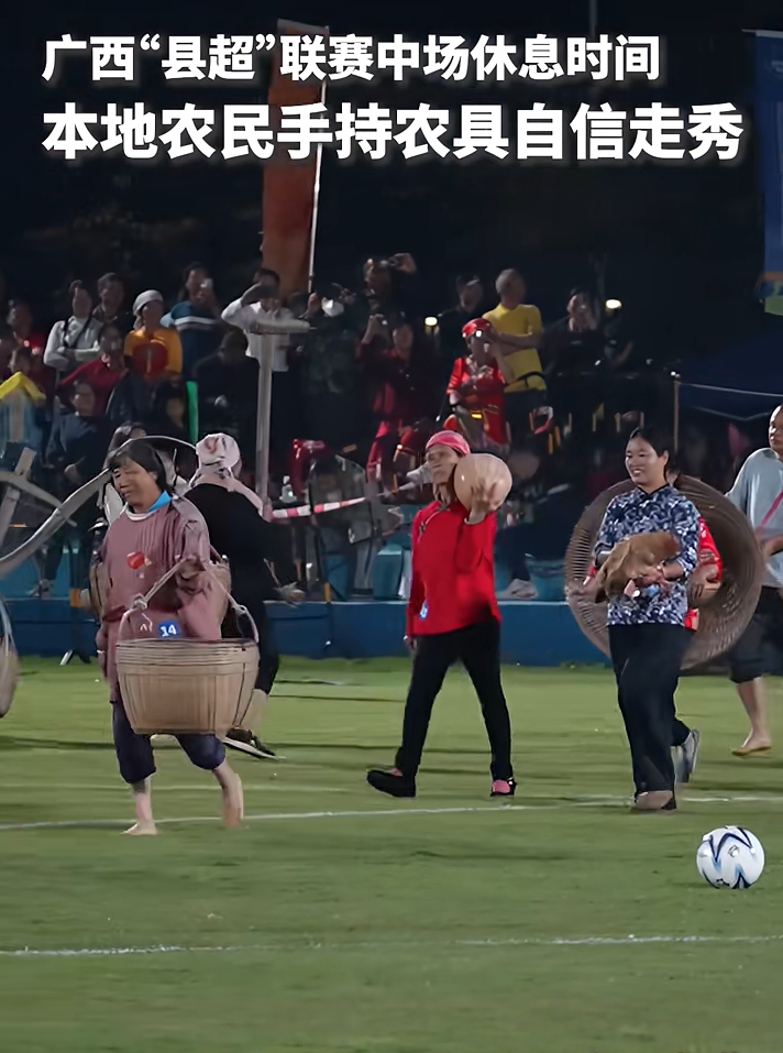 2026年3月18日,據(jù)《廣西日?qǐng)?bào)》《農(nóng)民日?qǐng)?bào)》等媒體報(bào)道,在廣西“縣超”桂平主場(chǎng)對(duì)戰(zhàn)賀州八步區(qū)的比賽中,桂平市石龍鎮(zhèn)新村的村民們身著蓑衣斗笠、藍(lán)布衫,扛著犁耙鋤頭,拎著簸箕竹籃,踏著民樂(lè)與流行曲混搭的節(jié)拍,把“鄉(xiāng)村T臺(tái)”搬上賽場(chǎng)?!度嗣袢?qǐng)?bào)》、央視新聞等媒體予以轉(zhuǎn)載報(bào)道,相關(guān)微博話(huà)題“#被這場(chǎng)鄉(xiāng)村T臺(tái)秀刷屏了#”“#廣西農(nóng)民扛著農(nóng)具自信走秀#”等閱讀量累計(jì)超800萬(wàn)?!癅中國(guó)三農(nóng)發(fā)布”評(píng)論稱(chēng),當(dāng)鄉(xiāng)親們帶著這些浸潤(rùn)了歲月痕跡的老物件,昂首走上現(xiàn)代化的綠茵場(chǎng),他們帶來(lái)的不僅是一場(chǎng)表演,更是一次跨越時(shí)空的深情回望。這一現(xiàn)象之所以能被廣泛傳播、成為“頂流”,恰恰說(shuō)明人們對(duì)真實(shí)、質(zhì)樸、有根脈的文化打心底里需要。鄉(xiāng)親們扛著農(nóng)具走秀的這份真實(shí)和鮮活,那種不加濾鏡的笑臉,比什么精心設(shè)計(jì)都動(dòng)人。網(wǎng)民也紛紛點(diǎn)贊此次“農(nóng)民走秀”,稱(chēng)“勞動(dòng)人民最美麗”“淳樸真實(shí)最打動(dòng)人心”。相關(guān)言論獲得大量點(diǎn)贊,“縣超”的傳播熱度進(jìn)一步攀升。