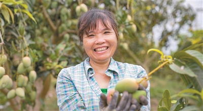 百色果農(nóng)在芒果地里開心地采摘著芒果