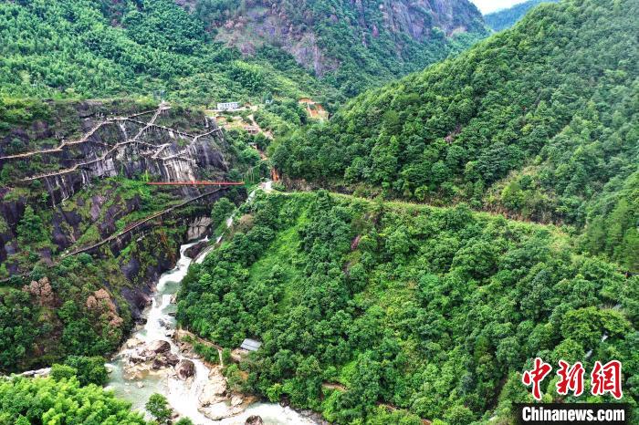 航拍江西上饒望仙峽谷風(fēng)光,秀峰蒼郁峻拔。(資料圖) 劉占昆 攝