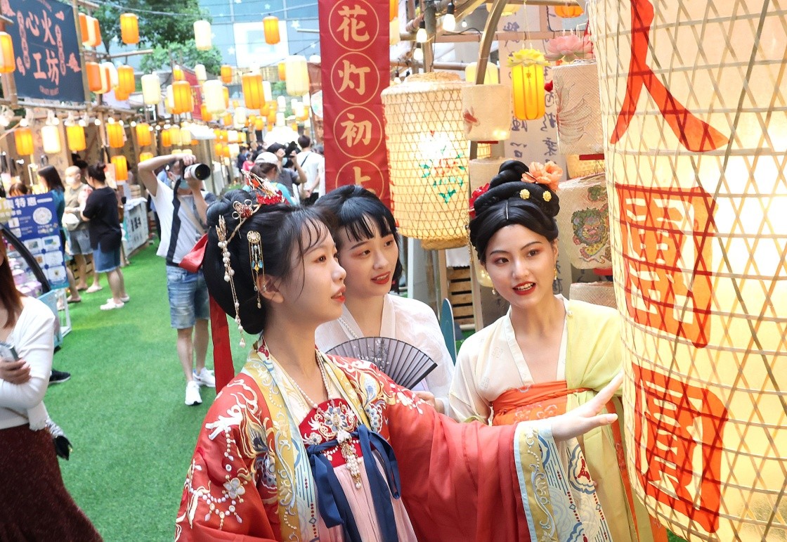 隨著中秋佳節(jié)的臨近,上海虹橋南豐城熱鬧非凡,游客在古色古香的繁華街市感受節(jié)日氛圍,品味傳統(tǒng)文化。