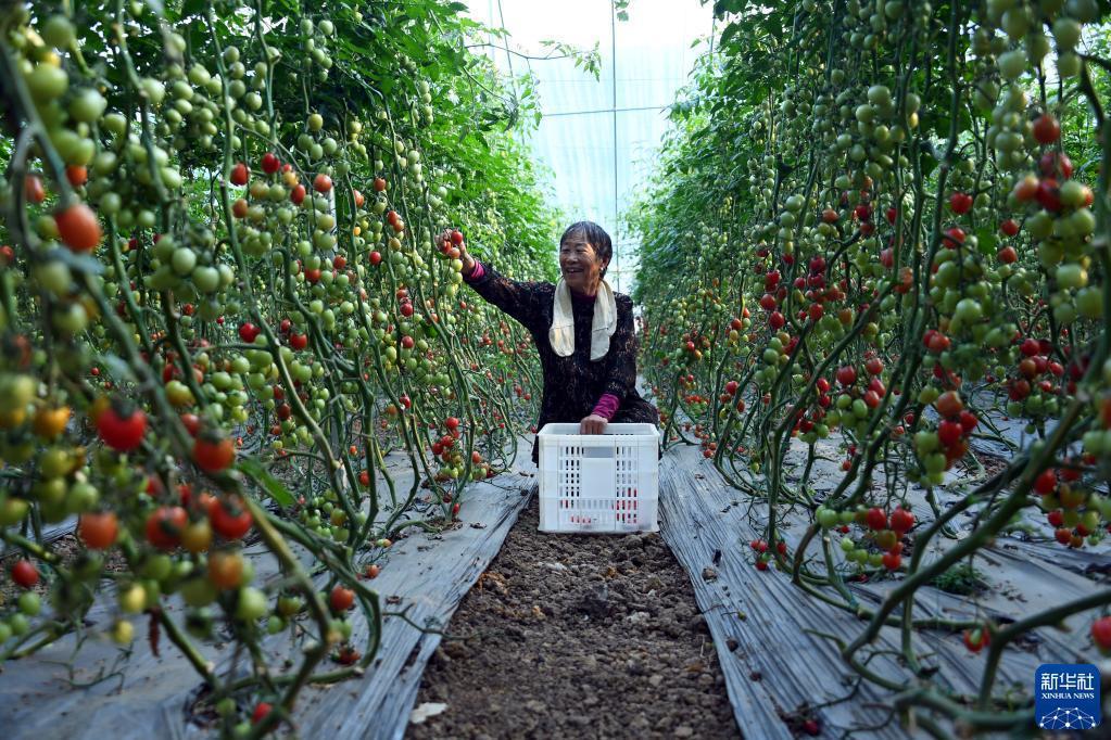 4月1日,菜農(nóng)在棗莊市臺兒莊區(qū)馬蘭屯鎮(zhèn)按揭農(nóng)業(yè)基地采摘西紅柿。記者 范長國 攝