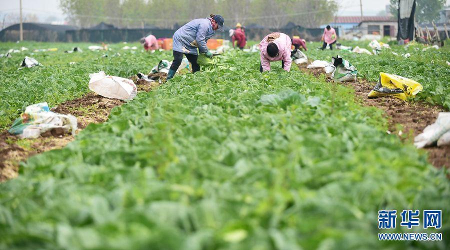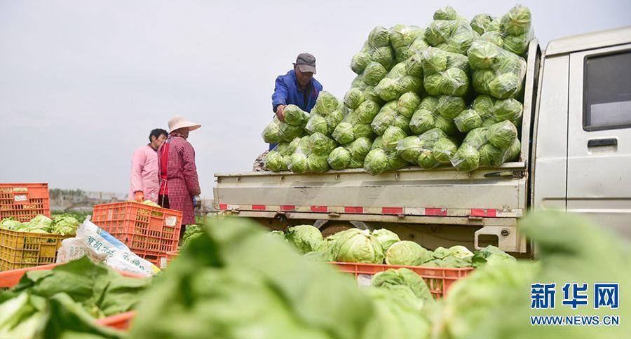 4月5日,在平樂鎮(zhèn)象莊村蔬菜種植基地內(nèi),農(nóng)民正忙著采收新鮮的包菜。黃政偉 攝