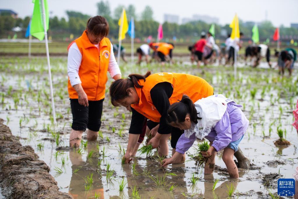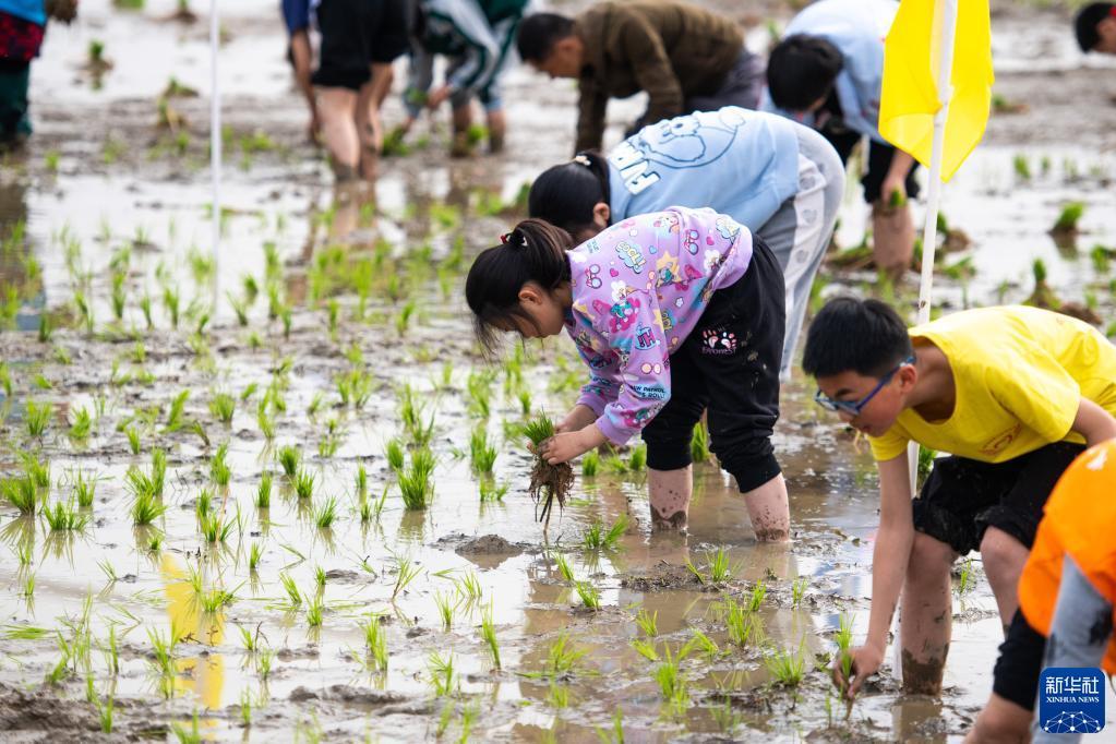 當(dāng)日,在湖南省長沙市寧鄉(xiāng)市灰湯鎮(zhèn)花果山村舉行的農(nóng)耕民俗文化節(jié)學(xué)生研學(xué)活動中,孩子們通過開展稻田插秧、捉泥鰍等“農(nóng)趣” 比賽,走進(jìn)田間地頭,感受勞動帶來的艱辛與快樂。