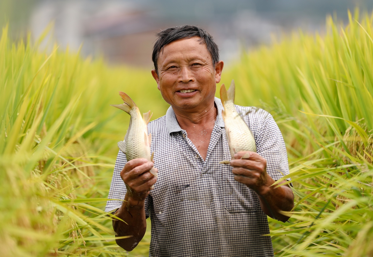 “快看!這條魚又大又肥?!苯眨谫F州省天柱縣高釀大壩稻漁綜合種養(yǎng)提升項目州級試驗示范點,村民伍名美雙手舉著稻田魚高興地說。